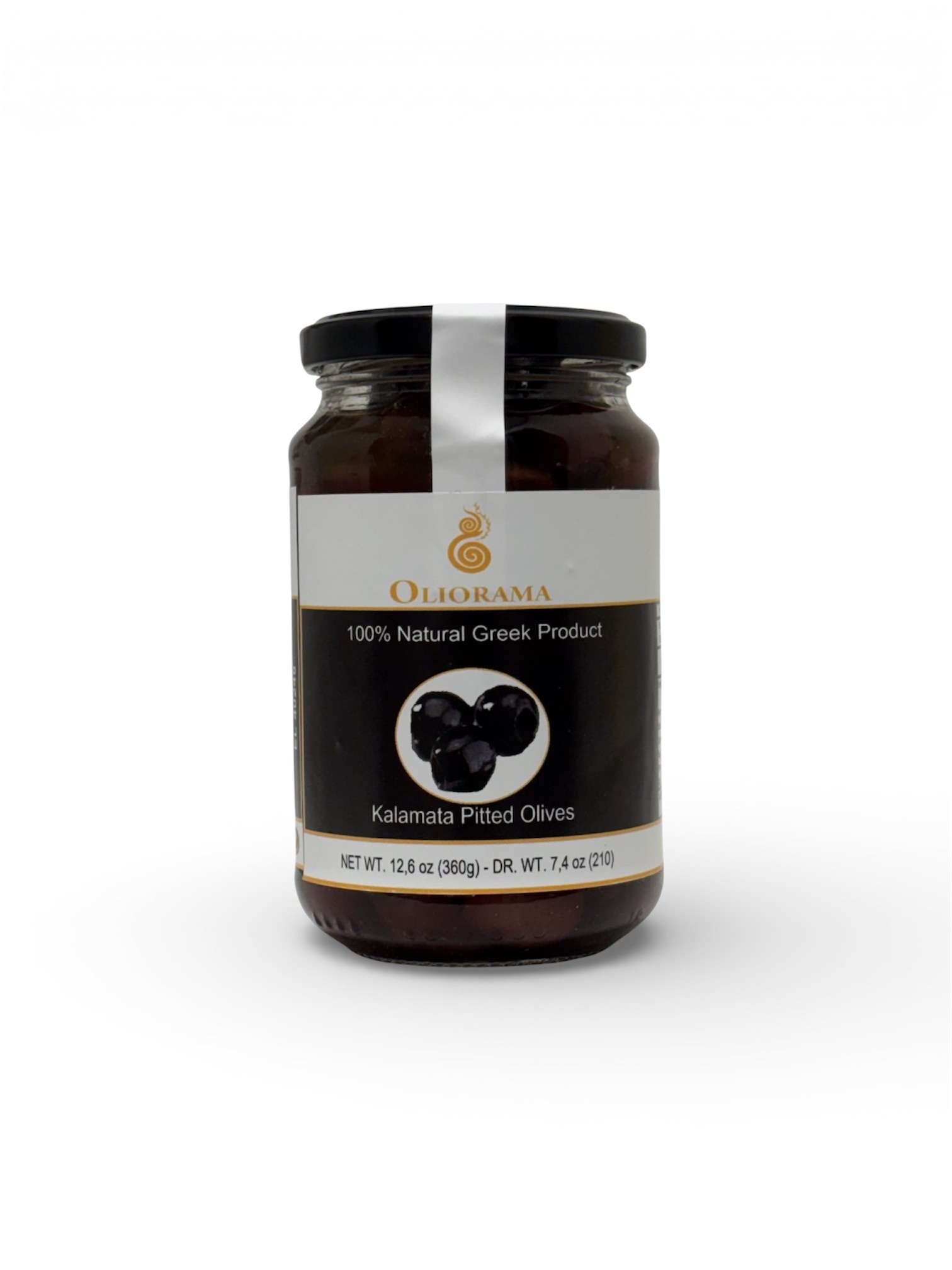 Glas mit entsteinten griechischen Kalamata-Oliven. 360 Gramm (abgetropft 210 Gramm)