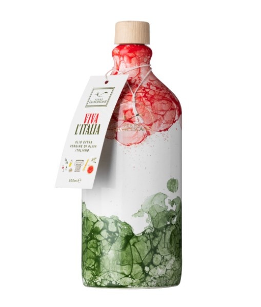 Un hommage au drapeau italien. Pressée à froid à partir d'olives 100 % italiennes.
