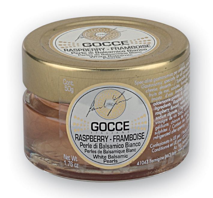 Heerlijke balsamico kaviaar parels van witte balsamico met frambozen extract
