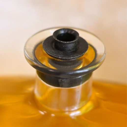 De glazen stop, ontworpen door Estoublon en lijkend op geslepen kristal, roept de